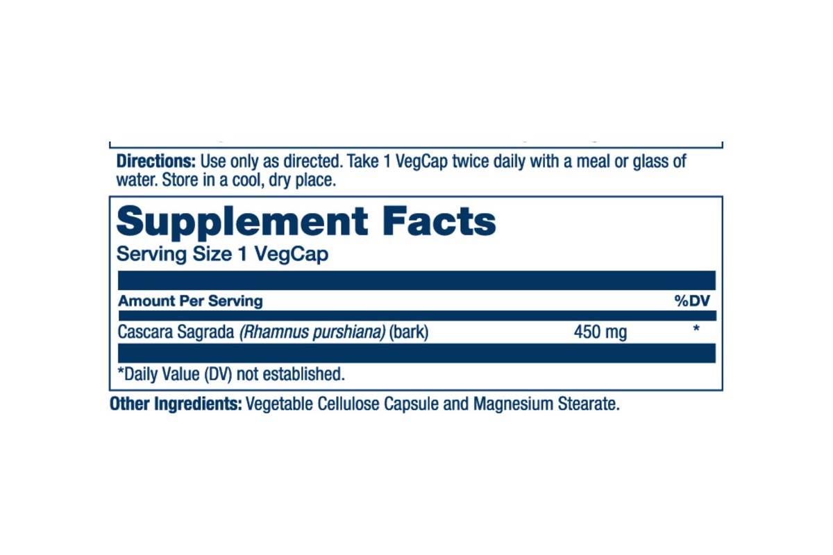 Los glucósidos hidroxi-antracénicos presentes en la cáscara sagrada son metabolizados por la microbiota del intestino grueso en compuestos activos que estimulan la motilidad colónica y aumentan la secreción de agua y electrolitos hacia los intestinos. Este mecanismo contribuye al ablandamiento de las heces y a la reducción del tiempo de tránsito intestinal, favoreciendo una evacuación eficaz en casos de estreñimiento ocasional. Su acción se limita principalmente al colon, con mínima absorción sistémica y sin efecto significativo sobre el intestino delgado cuando se utiliza de forma adecuada y a corto plazo.