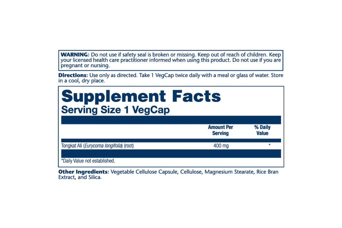 Tongkat Ali de Solaray Proporciona en cada cápsula de 400 mg toda la raíz para que obtenga el máximo provecho de cada cápsula. Completamente libre de ingredientes geneticamente modificados y fabricado en los laboratorios verificados de Solaray en UTAH, EEUU.