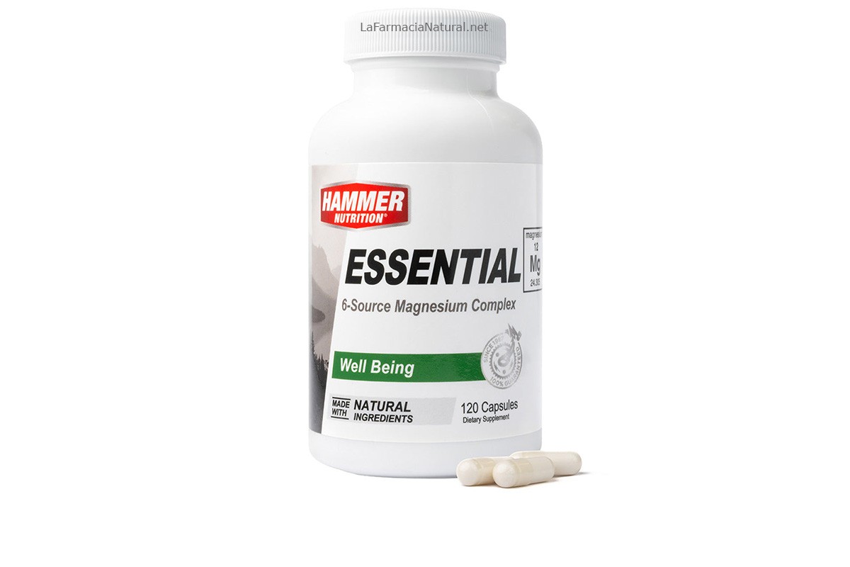 Essential de Hammer Nutrition es un suplemento premium de magnesio que combina seis formas altamente biodisponibles para combatir la deficiencia común en más del 80% de la población. Proporciona 200 mg de magnesio elemental por porción, apoyando funciones vitales como la relajación muscular, el sueño y la energía diaria, sin los efectos secundarios de otras formulas.